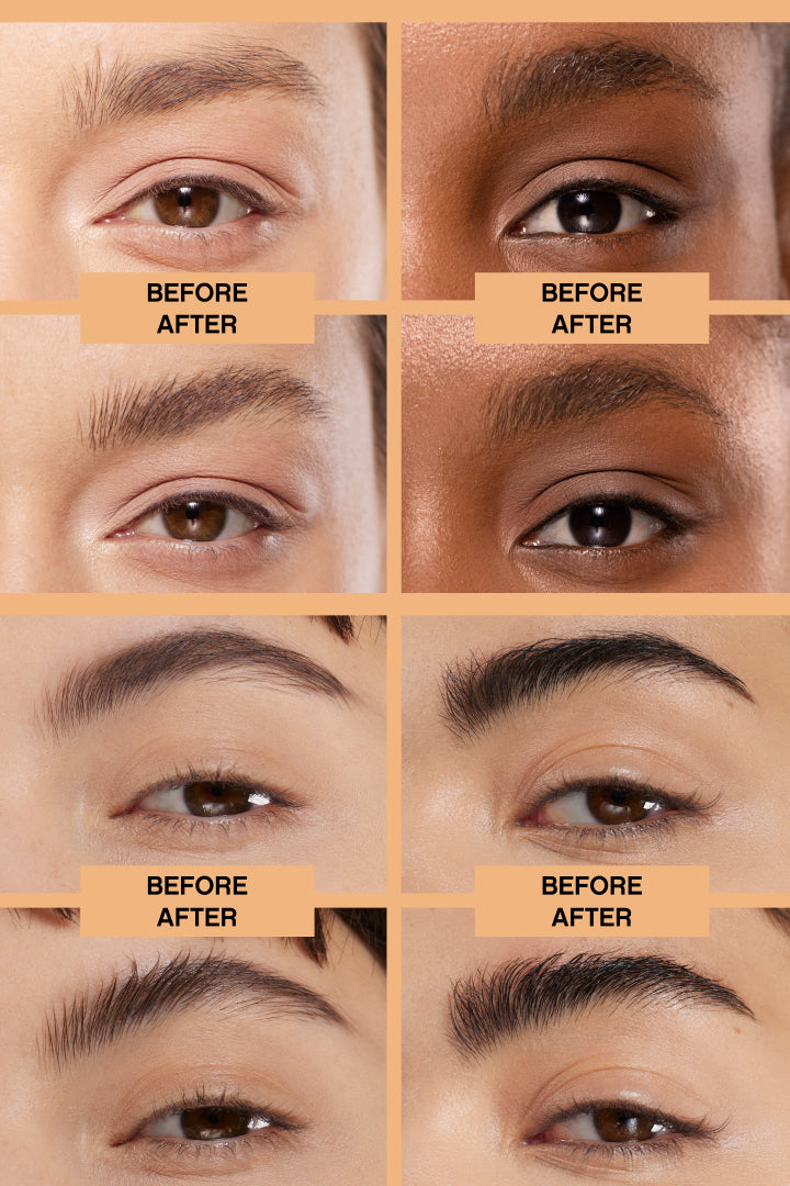 A natural, polished finish with lifted, defined brows. It adds subtle volume and structure without shine or visible residue, so brows look groomed, full, and clean.